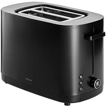 Show more Discover your new favorite kitchen companion, the ZWILLING Enfinigy 2 Slice Toaster. This elegant toaster is not just a stylish addition to your countertop but also a testament to premium engineering. Featuring innovative 1.5-inch extra-wide slots, it effortlessly accommodates oversized bread, including thick slices of sourdough and bagels, providing versatility in toasting. With its sleek black finish, the toaster is designed to blend seamlessly with your other kitchen appliances, adding a touch of modern sophistication.
