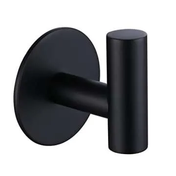 ZWTNBFST Adhesive Hooks 304 Stainless Steel Robe Hook Holder Heavy Coat Hook for Bathroom Kitchen Livingroom Garage Hotel Brushed Finish 2pcs (Matte Black)