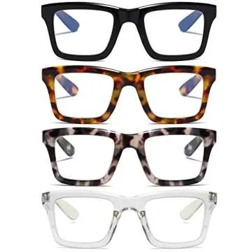 Show moreThe ZXYOO 4 Pack Oprah Style Reading Glasses is the perfect blend of functionality and fashion. Tailored for both women and men, these reading glasses not only enhance your vision but also elevate your style quotient. Each pack includes four chic pairs, featuring a stunning grey/mauve tortoise shell frame along with three other trendy colors. These readers are specially designed to combat eye strain from digital screens, making them ideal for the modern lifestyle. The use of durable metal hinges ensures a long-lasting fit, while the classic square shape complements various face shapes, including an oval face, providing a snug, comfortable fit. Whether you’re reading, working on a computer, or just enjoying your leisure time, these glasses are here to provide a fashionable and practical solution.