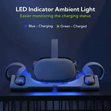 Show more Introducing the ZYBER Charging Dock for Meta Quest 2, the ultimate charging solution specifically designed for the gaming enthusiast! This innovative charging dock is more than just a charging station; it seamlessly integrates with your Quest 2 headset, elite strap with battery, and controllers, ensuring that your VR setup stays organized and ready to go at all times. Imagine the convenience of simultaneously charging all your essentials in one stylish location!