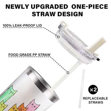 The delightful detachable straw is a game-changer; it allows for effortless sipping while ensuring cleanliness, as it is designed to stay pristine. The tumbler's thoughtful structure keeps the drinking area separate from the vibrantly printed cat designs, ensuring both safety and convenience.