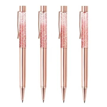 Show more Experience the elegance of writing with our stunning bling ballpoint pen, designed for the fashion-forward crowd. Crafted with a sleek rose gold metallic finish, this pen stands out with its exquisite accents that not only make it a writing tool but also a stylish accessory. Every twist-action pen promises a smooth and uninterrupted writing experience, featuring international standard black color ink that flows effortlessly, allowing you to write with minimum pressure. Whether jotting down notes or signing important documents, this pen excels in delivering defined lines without the nuisance of smudging or skipping.