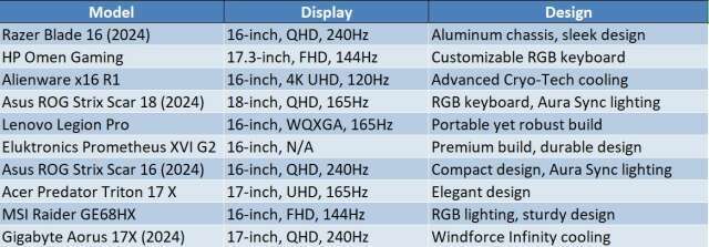 When comparing these top gaming laptops, it’s clear that each has its strengths: